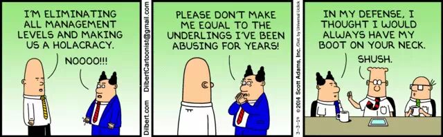 硅谷上下开始流行一种新的管理思路:CEO 正式放弃在公司决策和管理中相当大部分的权利,并且赋予每一位员工充分的施行自己创意灵感的权利和足够的保护。这种新的管理思路名为「合弄制」(Holacracy) 。名字蛮奇怪,但是这种思路已经开始流行了有半年多了,而且不少硅谷优秀初创公司的创始人已经开始在自己的公司中施行合弄制的管理制度。